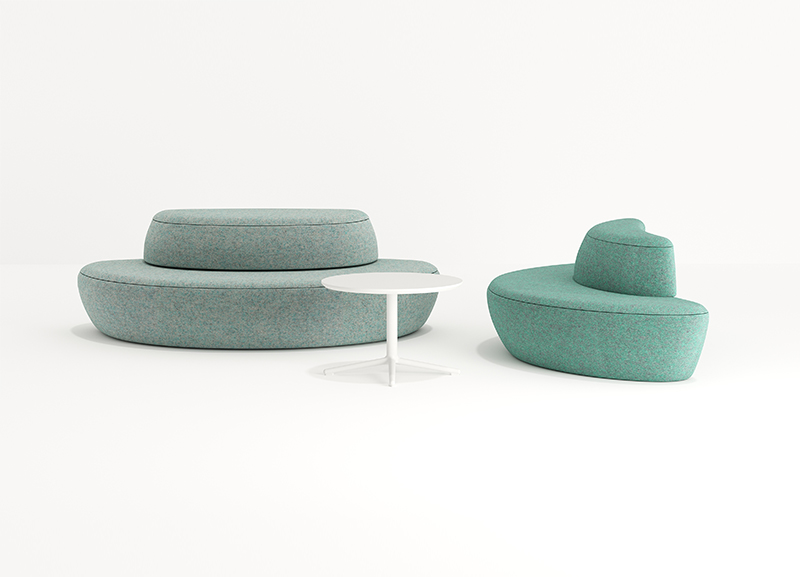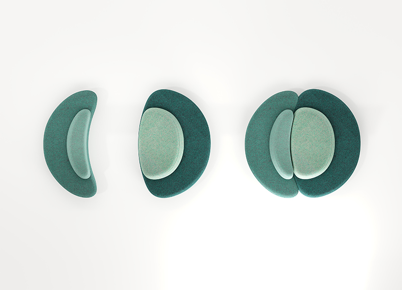 满月沙发的设计灵感是来自于月亮,借用月有盈亏的特征,将沙发分为两个不同时期的缺月形态,组合起来又形成满月,使沙发的组合更加趣味。